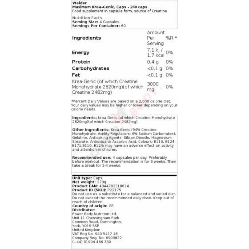 • Maximum Krea-Genic Weider Weider